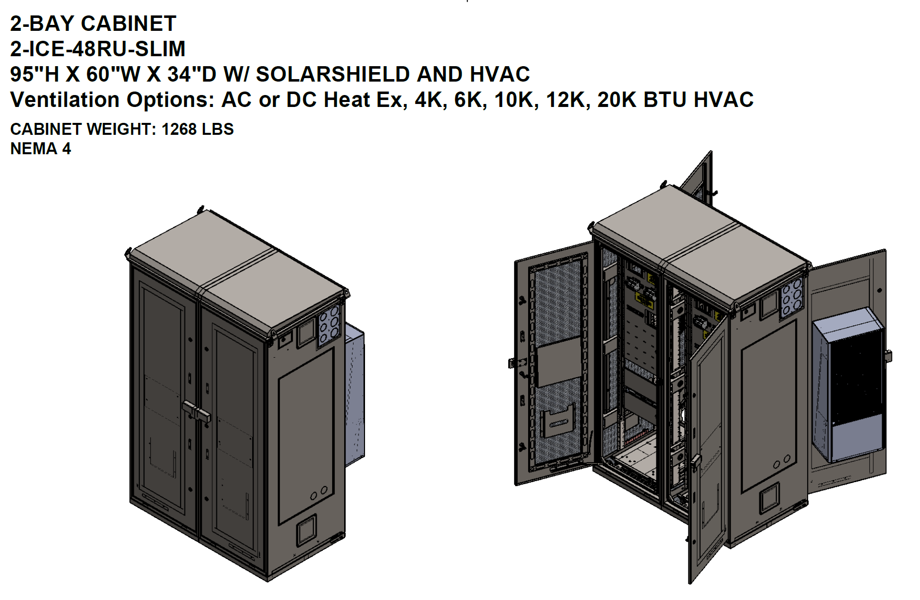● HVAC Units: From Dantherm. Available in AC or DC. Cooling capacity ranges from 2,000 to 14,000 BTU. These are installed on the back door of each cabinet bay.